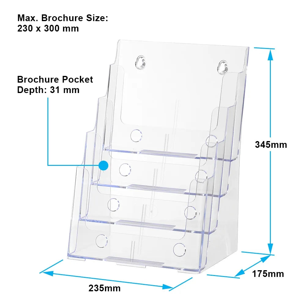 A4 Brochure Holder – 4-Tier Clear Acrylic Pamphlet Display Stand
