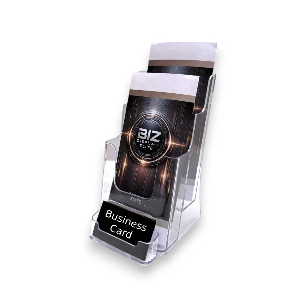 DL Brochure Holder – 2-Tier with Business Card Holder, Clear Acrylic Display for Countertops
