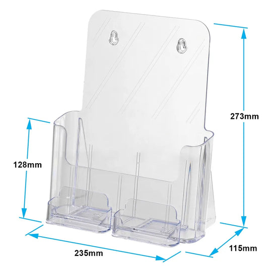 A4 Brochure Holder with Business Card Pockets – Clear Acrylic Display Stand