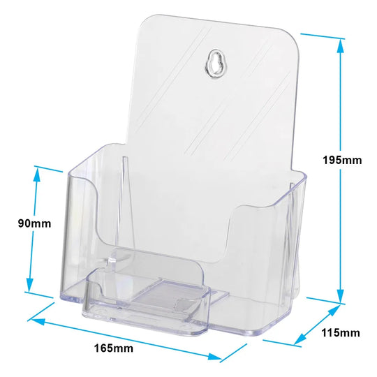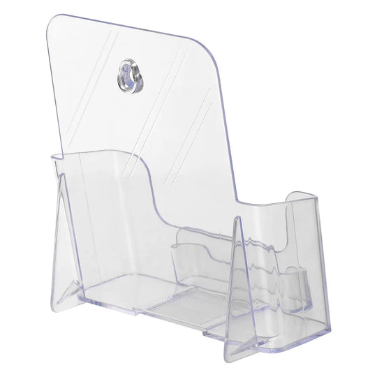 A5 Brochure Holder with Business Card Pocket – Clear Acrylic Counter Display