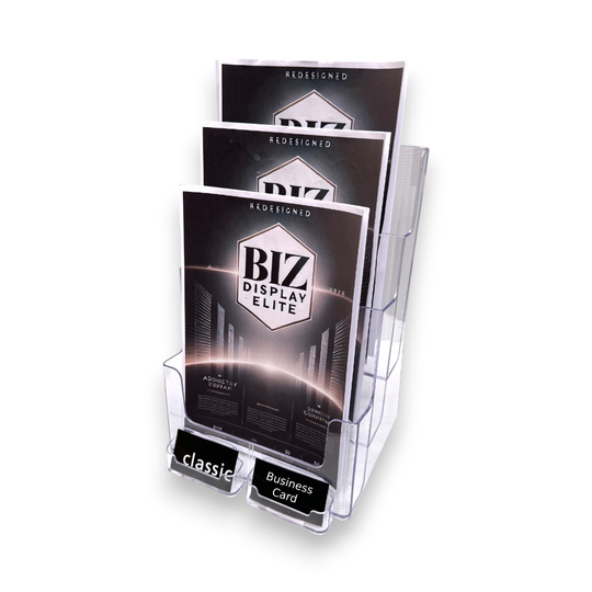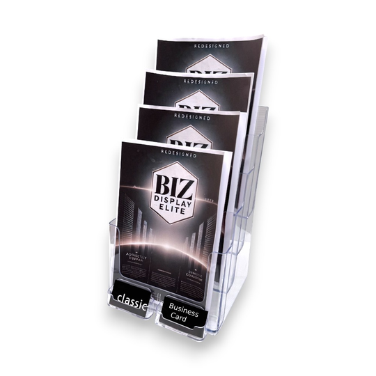 Countertop brochure holders are a key marketing tool for organizing flyers neatly. At BIZ Display Elite, we offer durable, injection-moulded clear plastic holders that provide a professional look. The more you buy, the lower the price, thanks to our bulk purchasing discounts. Order online today across Australia!