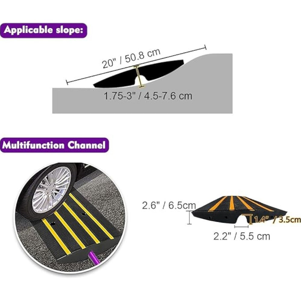 80mm Rubber Kerb Ramp with Reflective Safety Strips – Non-Slip & Heavy Duty