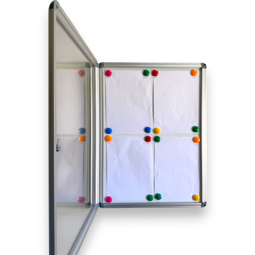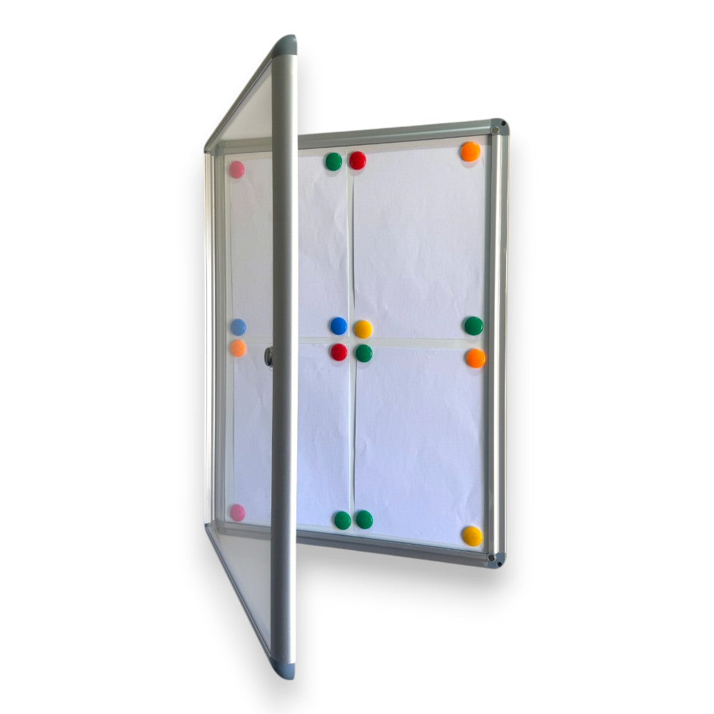 Lockable Magnetic Whiteboard Notice Board – 4xA4 Capacity, Aluminum Frame, Indoor Wall-Mounted Display