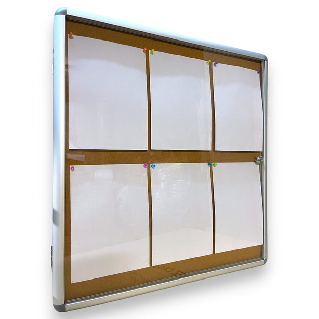 Notice Board Cabinets Indoor Wall Mounted Cork Board 6xA4 Papers