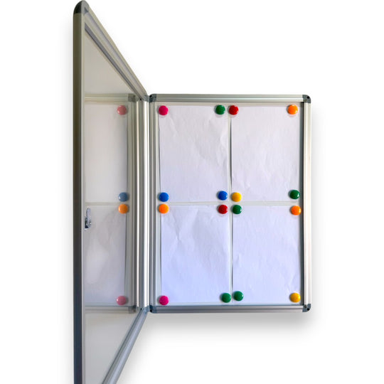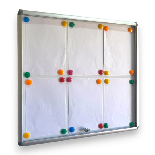 Lockable Magnetic Whiteboard Notice Board – 6xA4 Capacity, Aluminum Frame, Indoor Wall-Mounted Display