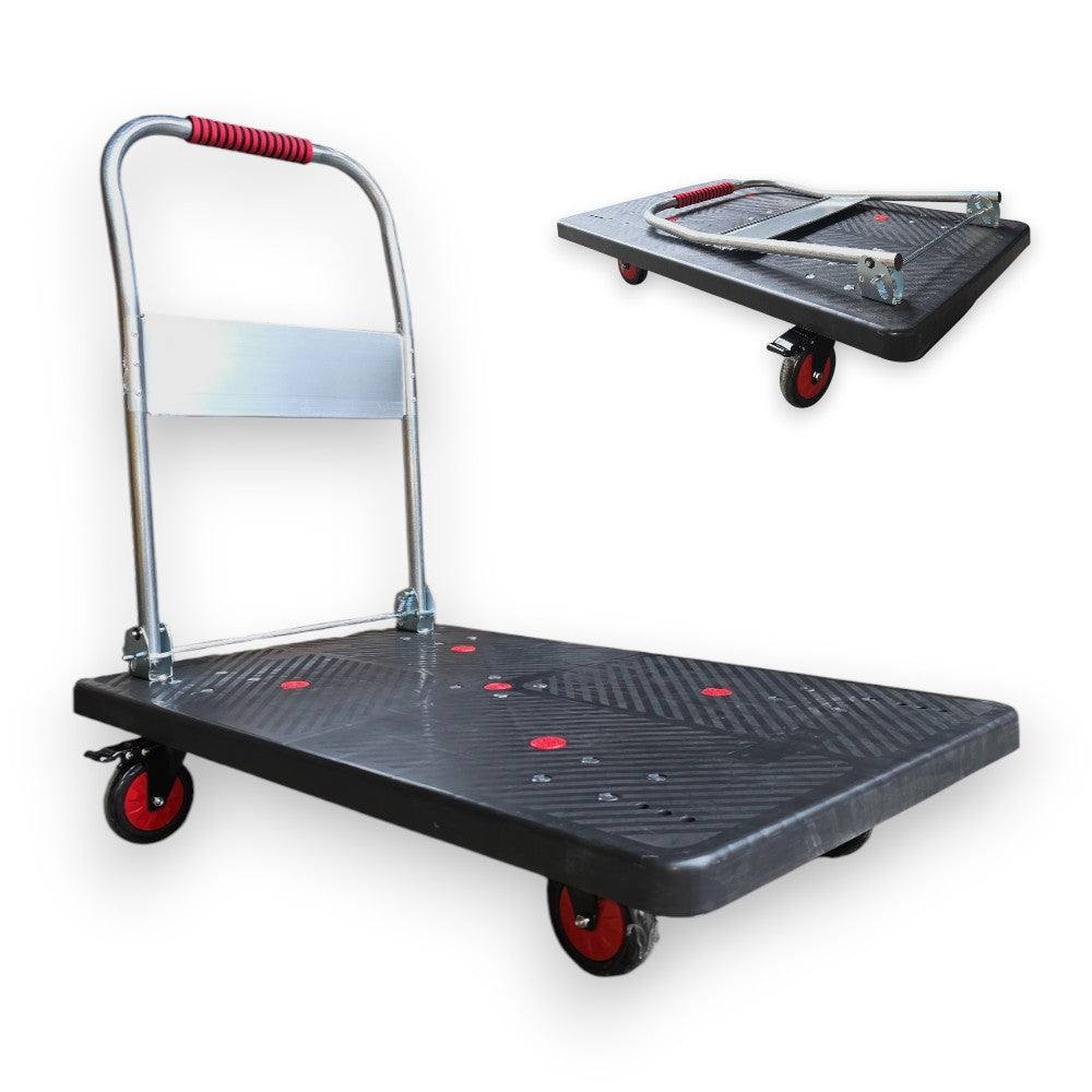 Built to handle heavy industrial loads with ease, this heavy duty platform trolley features a reinforced polypropylene deck, zinc-coated steel handle, and ultra-silent castors with integrated brakes. Ideal for warehouses, logistics, and commercial operations.