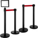 Black Retractable Barrier Post – 2m Red Belt, 4-Way Connector, Weighted Base
