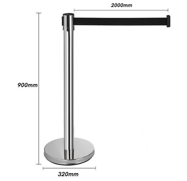 Silver Retractable Barrier Post – 2m Black Belt, 4-Way Connector, Weighted Base
