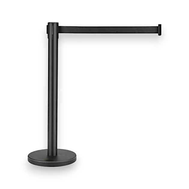 Black Retractable Barrier Post – 2m Black Belt, 4-Way Connector, Weighted Base