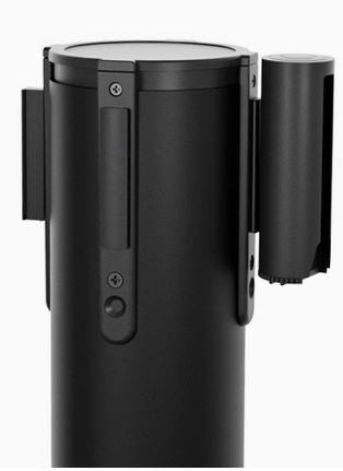 Black Retractable Barrier Post – 2m Black Belt, 4-Way Connector, Weighted Base