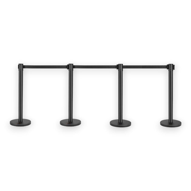 Black Retractable Barrier Posts – Set of 4 with 2m Black Belts, 4-Way Connectors, Weighted Base