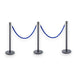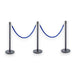 - Complete Set: 3 black bollard posts and 2 Blue velvet ropes.