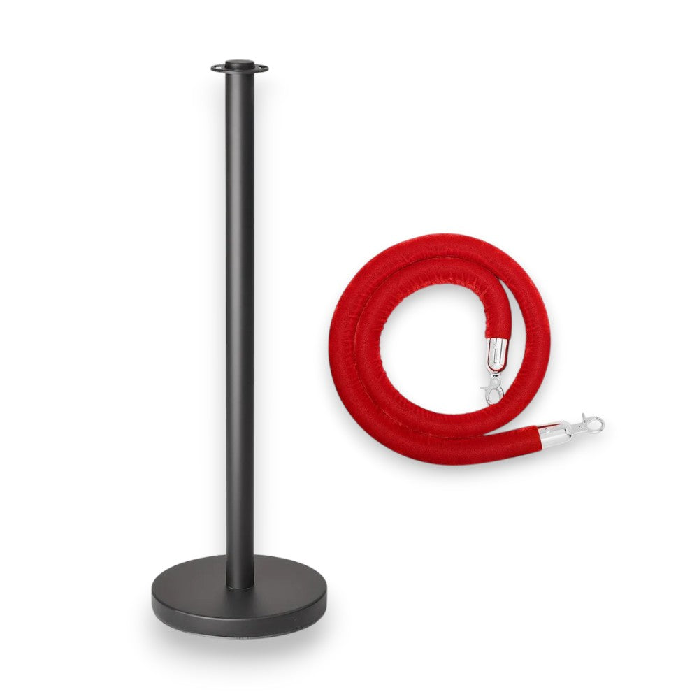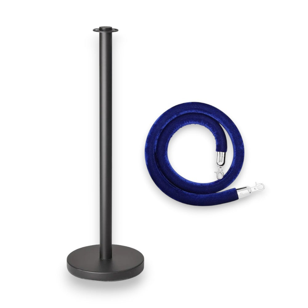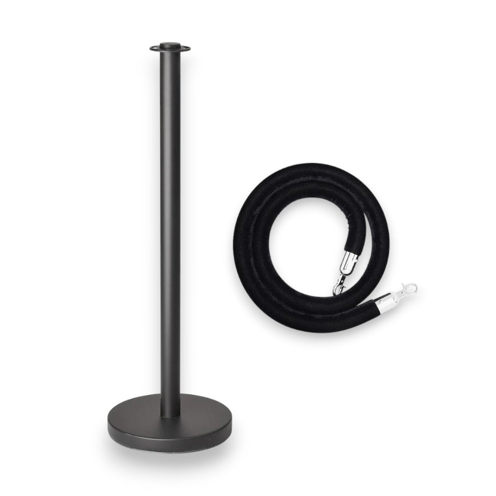 This elegant stanchion pole with a matte black finish and Cap Top is perfect for managing crowds in bars, restaurants, cinemas, exhibition halls, and car dealerships. Designed for stability, it features a weighted base made of rubber encased in a steel shell, with a rubber protector to prevent floor scuffing. Standing 1000mm tall, it is easy to assemble without tools and offers 4-way connectivity, making it versatile for any setup.