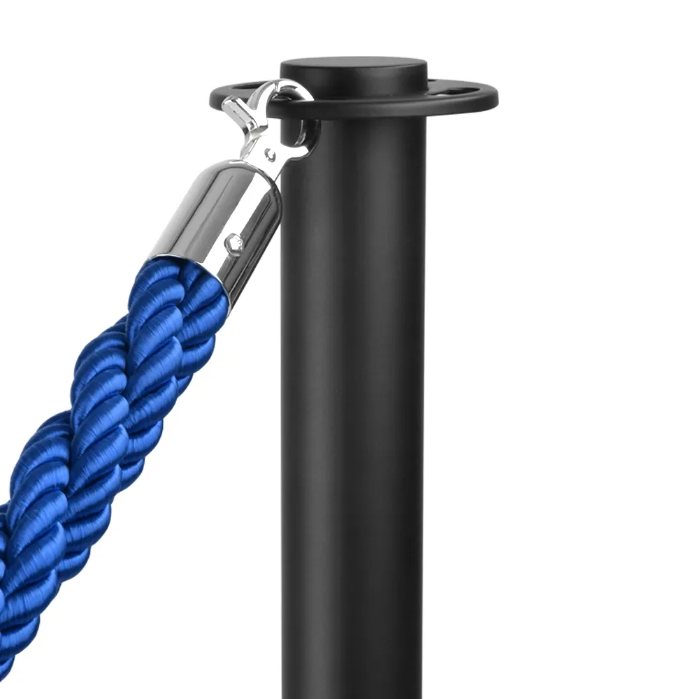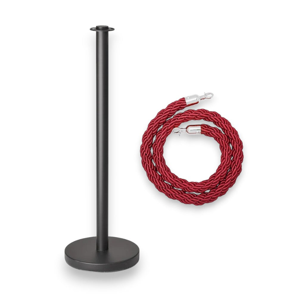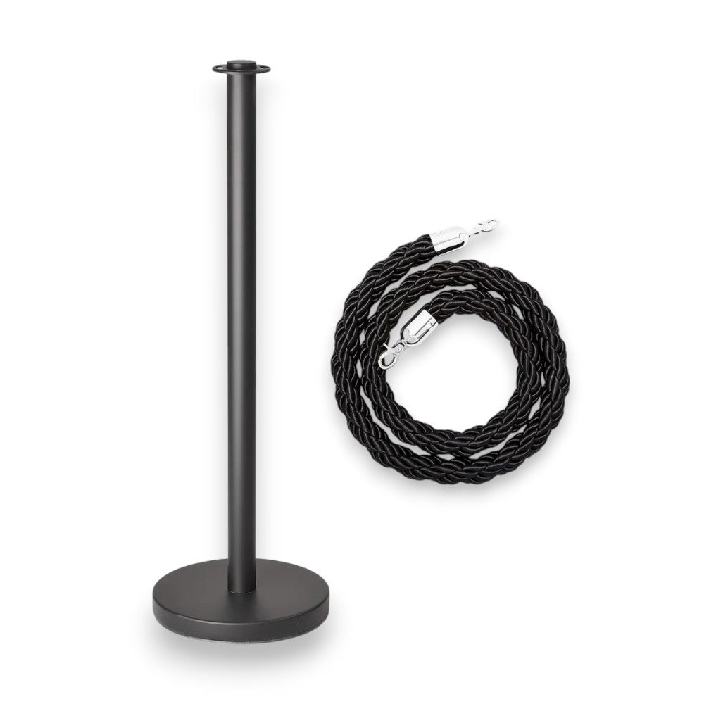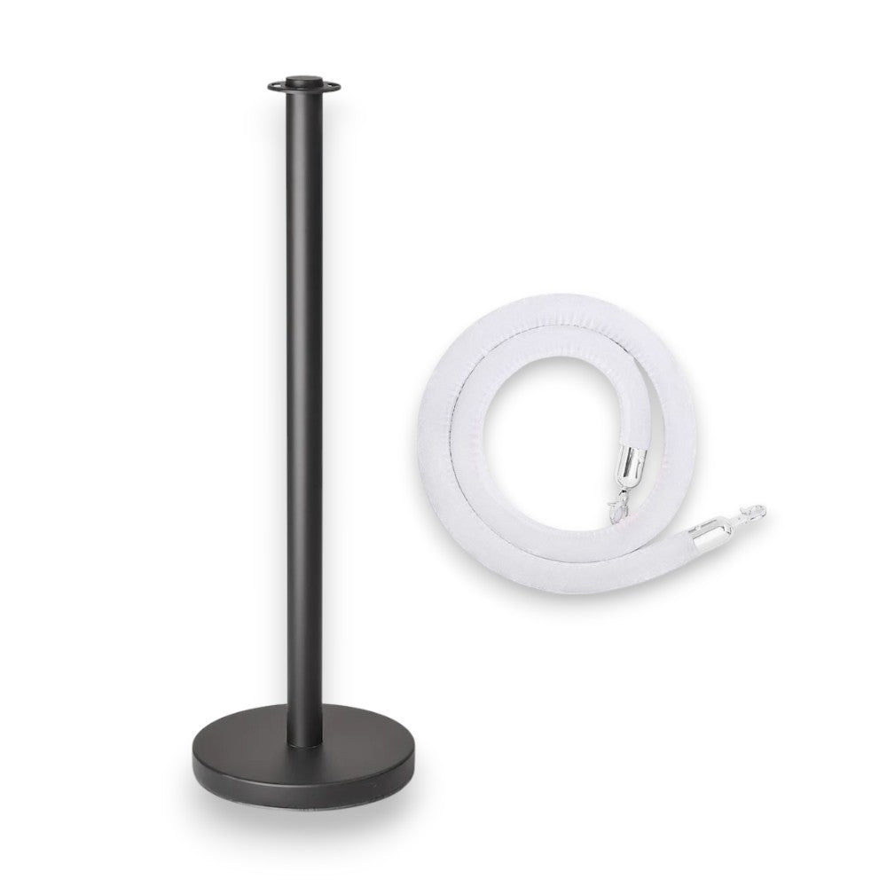 This elegant stanchion pole with a matte black finish and Cap Top is perfect for managing crowds in bars, restaurants, cinemas, exhibition halls, and car dealerships. Designed for stability, it features a weighted base made of rubber encased in a steel shell, with a rubber protector to prevent floor scuffing. Standing 1000mm tall, it is easy to assemble without tools and offers 4-way connectivity, making it versatile for any setup.