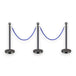 - Complete Set: 3 black bollard posts and 2 Blue velvet ropes.