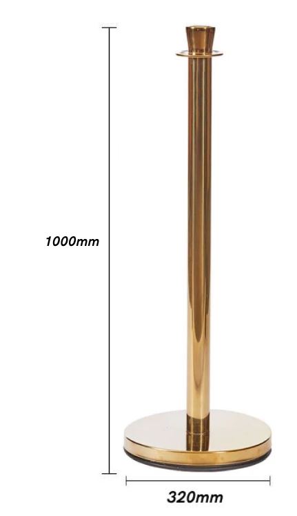 Enhance your space with this Gold Crowd Control Bollards Set, featuring a sophisticated crown-style top design. The set includes 3 gold-finished bollard posts (1 metre tall, 32cm base) and 2 red velvet ropes (1.5 metres each), covering approximately 2.7 metres.