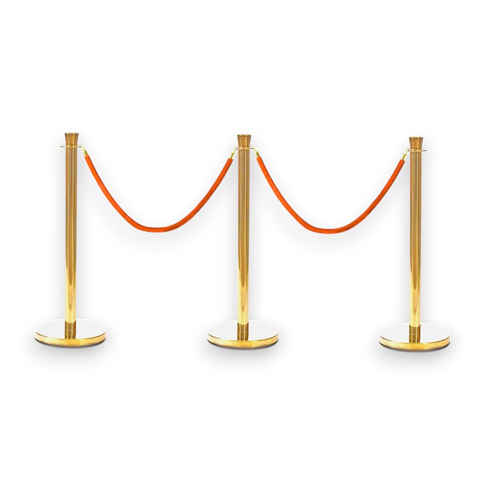 Gold Crowd Control Bollards Set of 3 Posts + 2 Red Ropes