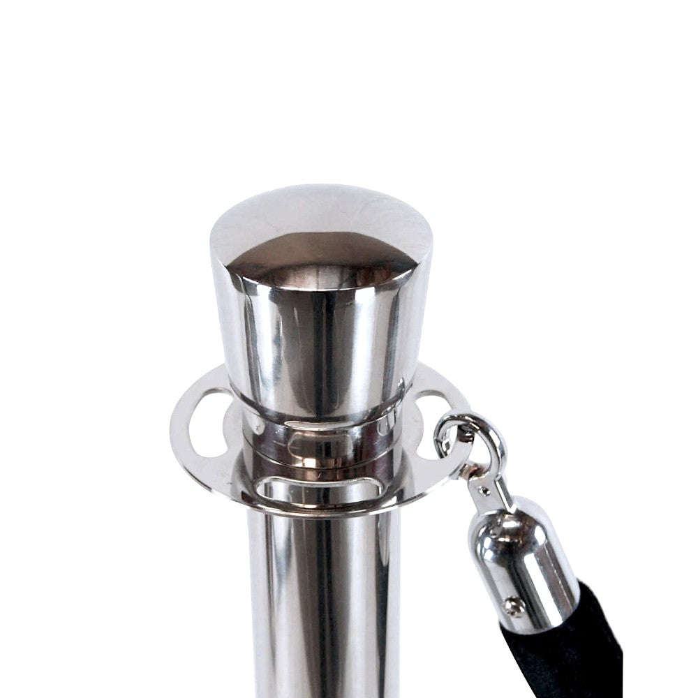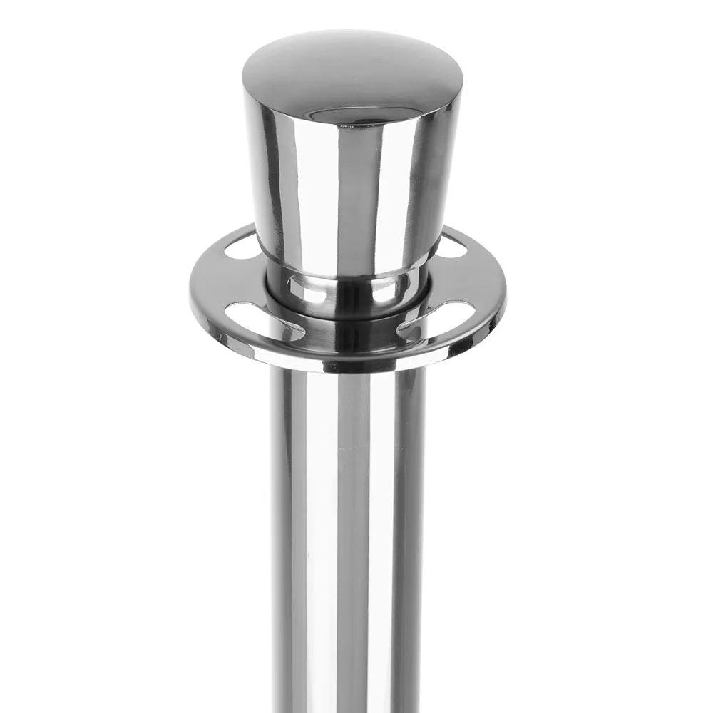 Enhance your space with this Silver Crowd Control Bollards Set, featuring a sophisticated crown-style top design. The set includes 3 polished stainless steel bollard posts (1 metre tall, 32cm base) and 2 Black velvet ropes (1.5 metres each), covering approximately 2.7 metres.