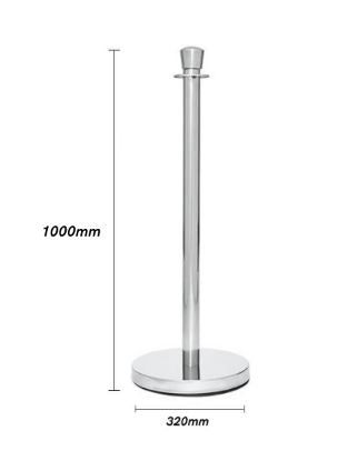 Enhance your space with this Silver Crowd Control Bollards Set, featuring a sophisticated crown-style top design. The set includes 3 polished stainless steel bollard posts (1 metre tall, 32cm base) and 2 red velvet ropes (1.5 metres each), covering approximately 2.7 metres.