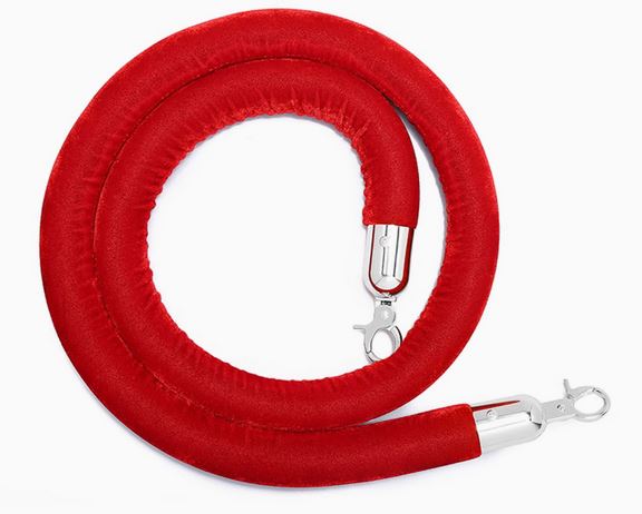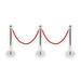 - Complete Set: 3 Silver bollard posts and 2 red velvet ropes.