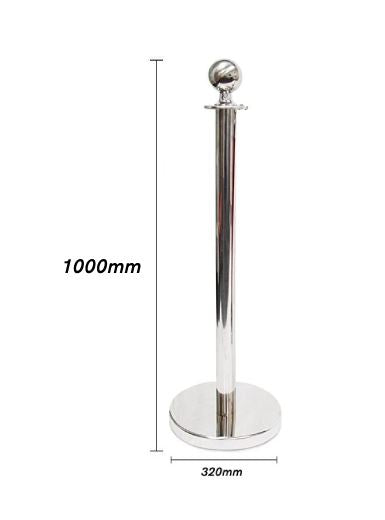Enhance your space with this Silver Crowd Control Bollards Set, featuring a sophisticated crown-style top design. The set includes 3 polished stainless steel bollard posts (1 metre tall, 32cm base) and 2 red velvet ropes (1.5 metres each), covering approximately 2.7 metres.
