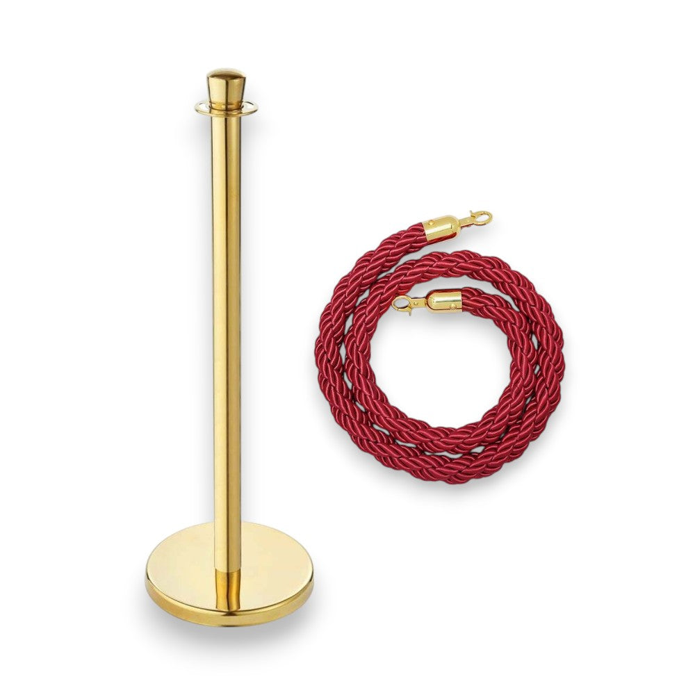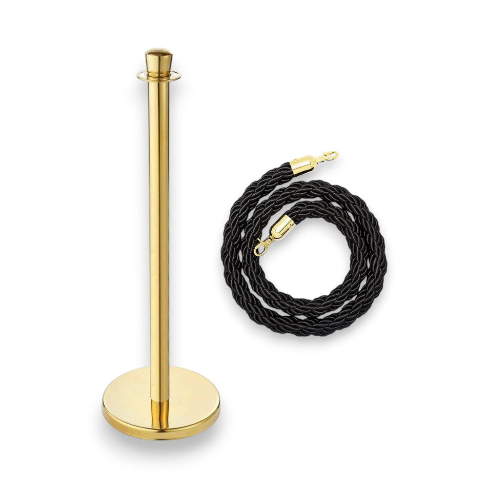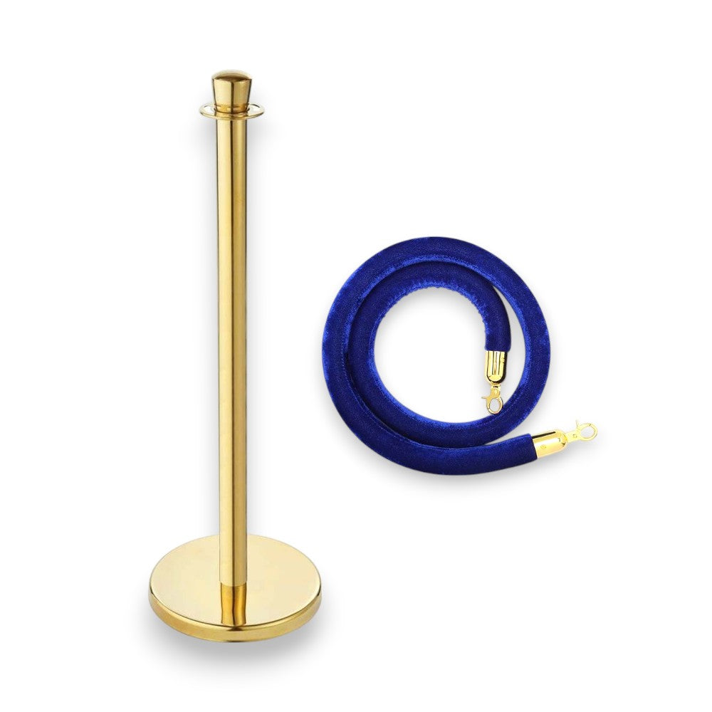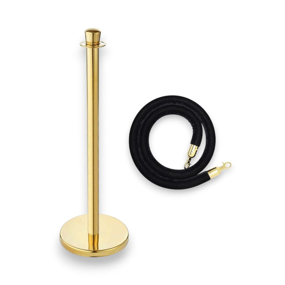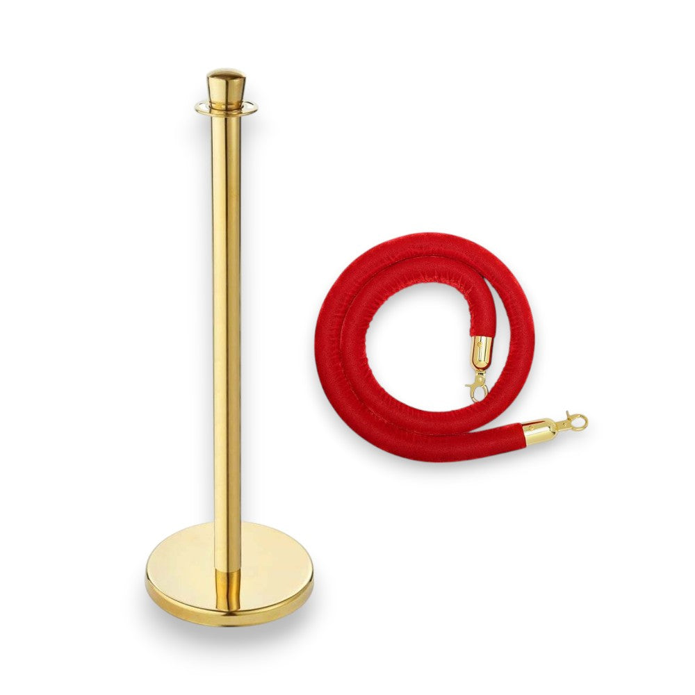 This elegant stanchion pole with a gold finish and Tulip Top is perfect for managing crowds in bars, restaurants, cinemas, exhibition halls, and car dealerships. Designed for stability, it features a weighted base made of rubber encased in a steel shell, with a rubber protector to prevent floor scuffing. Standing 1000mm tall, it is easy to assemble without tools and offers 4-way connectivity, making it versatile for any setup.