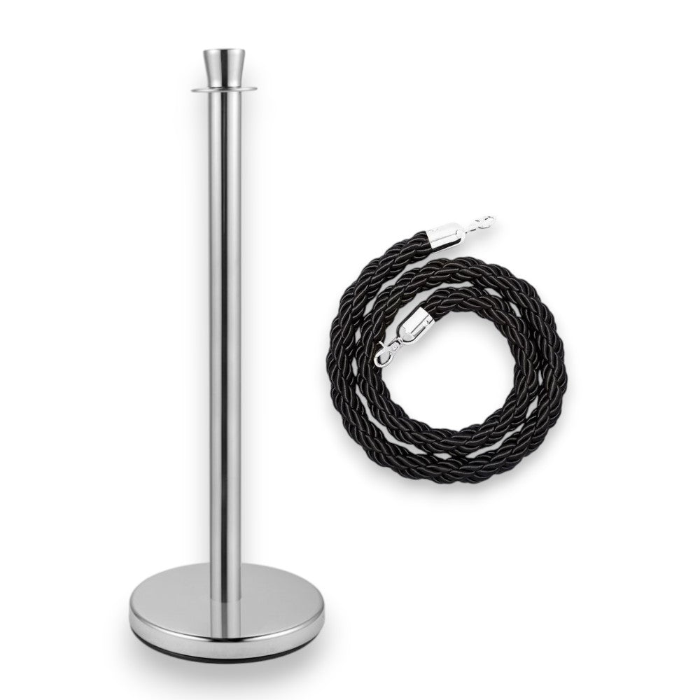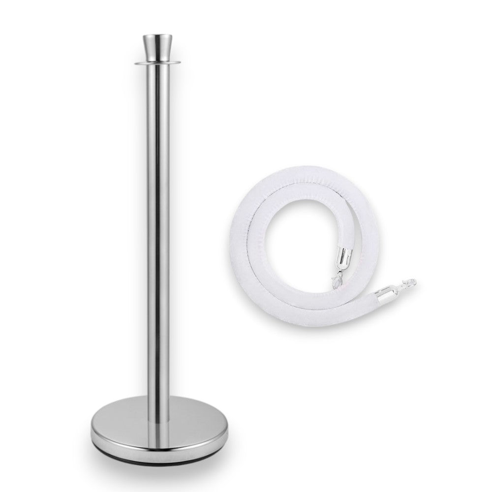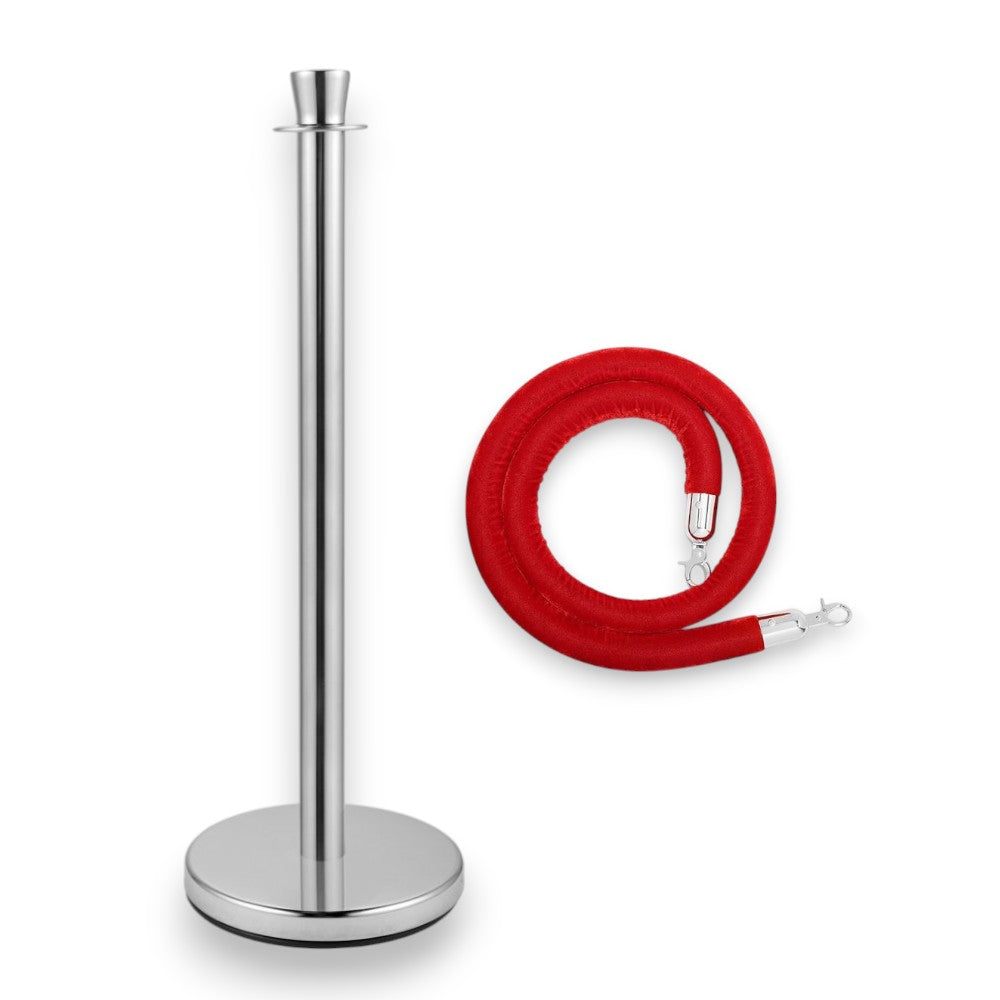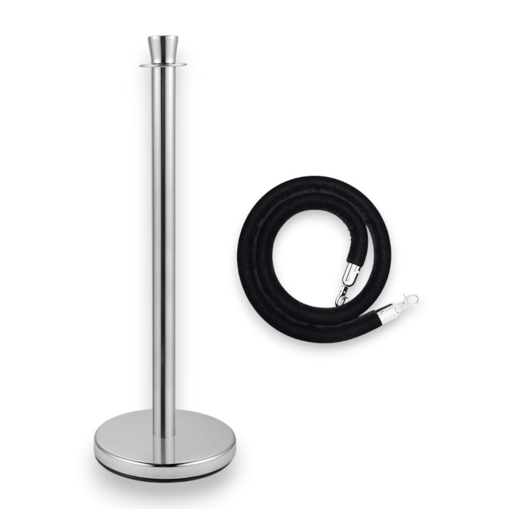 This elegant stanchion pole with a stainless steel finish and Tulip Top is perfect for managing crowds in bars, restaurants, cinemas, exhibition halls, and car dealerships. Designed for stability, it features a weighted base made of rubber encased in a steel shell, with a rubber protector to prevent floor scuffing. Standing 1000mm tall, it is easy to assemble without tools and offers 4-way connectivity, making it versatile for any setup.