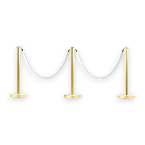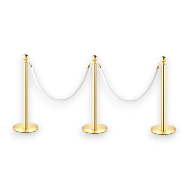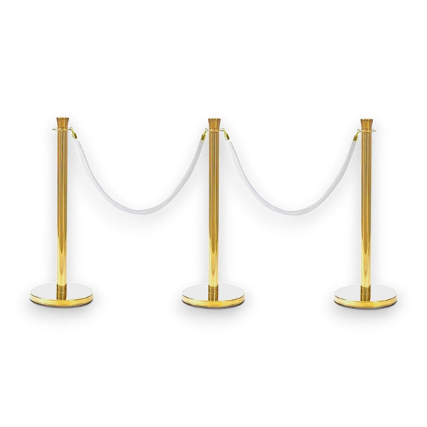 Gold Stanchions Crowd Control Set of 3 Posts + 2 White Ropes