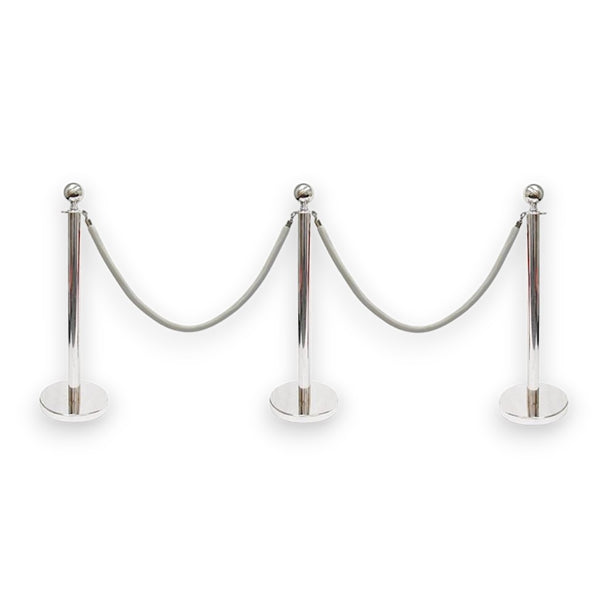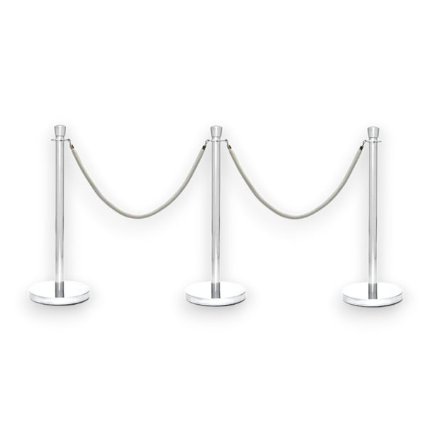 Silver Crowd Control Bollards Set of 3 Posts + 2 White Ropes
