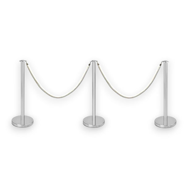 Silver Stanchions Crowd Control Set of 3 Posts + 2 White Ropes