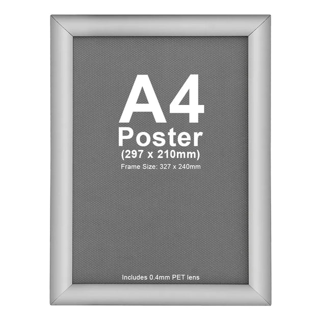 A4 Silver Snap Frame – 25mm Profile, Wall Mounted Poster Display