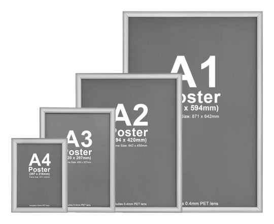 A1 Self-Adhesive Silver Snap Poster Frame – 25mm Profile