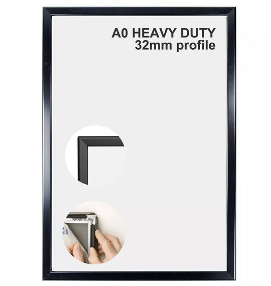 A0 Black Heavy-Duty Snap Poster Frame – 32mm Profile, Wall Mount, Anti-Glare Cover