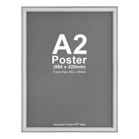 A2 Silver Snap Frame – 25mm Profile, Wall Mounted Poster Display