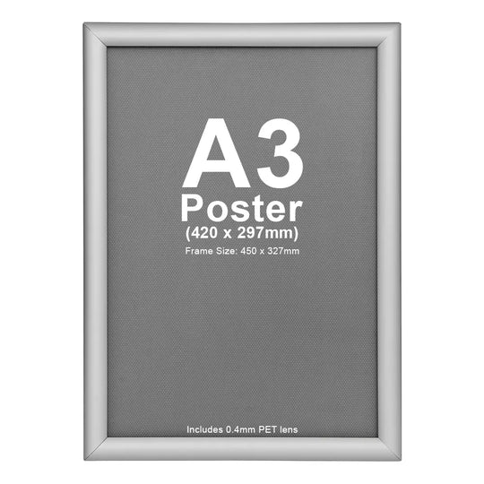 A3 Silver Snap Frame – 25mm Profile, Wall Mounted Poster Display