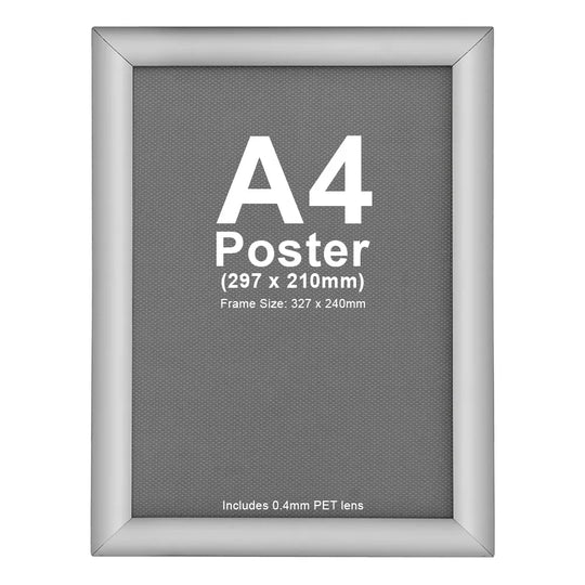 A4 Silver Snap Frame – 25mm Profile, Wall Mounted Poster Display