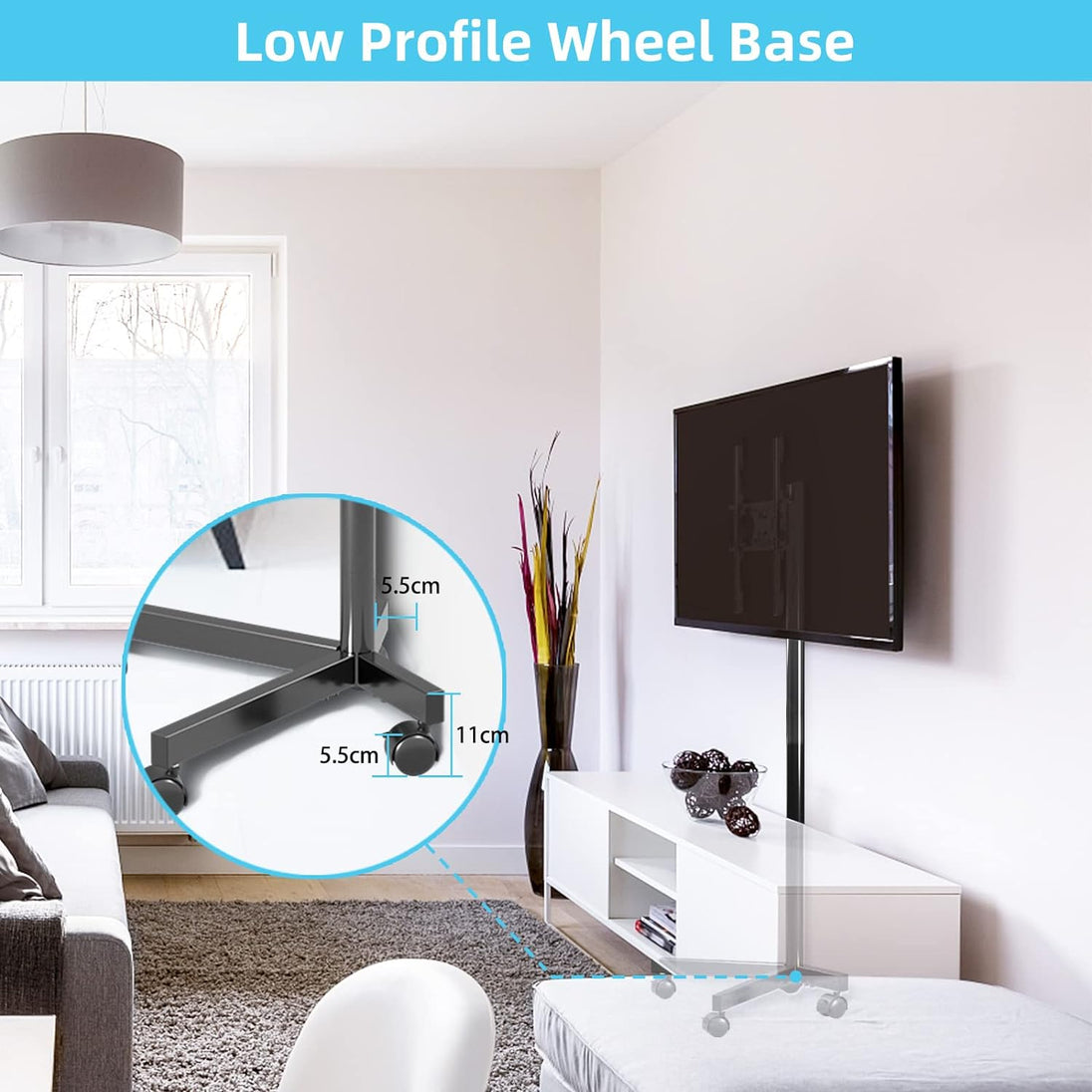 - Enhanced Safety & Stability: Our portable TV stand is built with high-grade cold-rolled steel, ensuring superior load-bearing capacity and stability. It is designed with your safety in mind, so say goodbye to worries about wobbling or tipping.