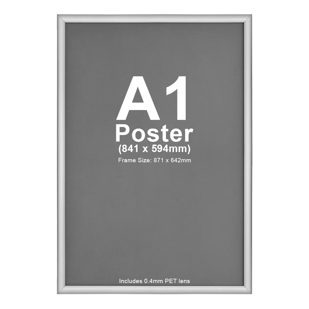 A1 Silver Snap Frame – 25mm Profile, Wall Mounted Poster Display