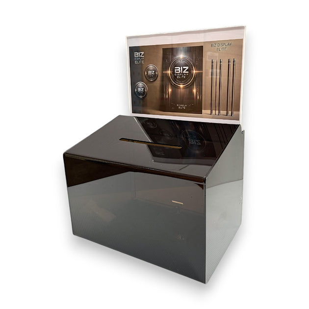 A4 Lockable Tinted Acrylic Donation & Suggestion Box with Sign Holder