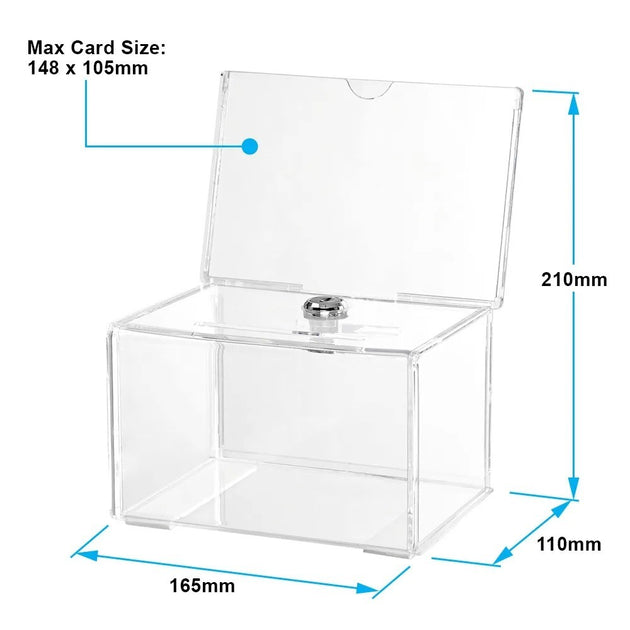 A6 Lockable Acrylic Donation & Suggestion Box with Sign Holder – Clear Countertop Collection Box